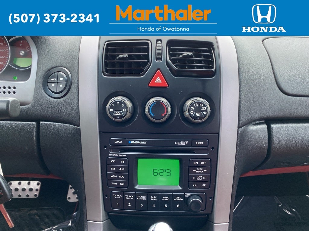 This vehicle Contains the following features and options: 10 Speakers, 17 x 8 5-Spoke Painted Aluminum Wheels, 4-Wheel Disc Brakes, ABS brakes, Air Conditioning, Alloy wheels, AM/FM radio, Black Leather Seat Trim, Bumpers: body-color, CD player, Delay-off headlights, Driver door bin, Driver vanity mirror, Dual front impact airbags, ETR AM/FM Stereo w/In-Dash 6-Disc CD Chngr, Four wheel independent suspension, Front & Rear Sport Bucket Seats, Front anti-roll bar, Front Bucket Seats, Front Center Armrest, Front fog lights, Front reading lights, Fully automatic headlights, Illuminated entry, Leather Shift Knob, Passenger door bin, Passenger vanity mirror, Power door mirrors, Power driver seat, Power passenger seat, Power steering, Power windows, Premium audio system: Blaupunkt, Radio data system, Rear anti-roll bar, Rear window defroster, Remote keyless entry, Security system, Speed control, Split folding rear seat, Spoiler, Steering wheel mounted audio controls, Tachometer, Telescoping steering wheel, Tilt steering wheel, Traction control, Trip computer, and Variably intermittent wipers.