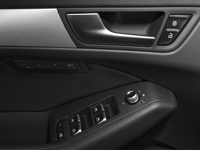 This vehicle Contains the following features and options: 10 Speakers, 2.84 Axle Ratio, 4-Wheel Disc Brakes, 8.0J x 18 5-Spoke-V-Design Wheels, ABS brakes, Air Conditioning, Alloy wheels, AM/FM radio: Sirius, Automatic temperature control, Brake assist, Bumpers: body-color, CD player, Delay-off headlights, Driver door bin, Driver vanity mirror, Dual front impact airbags, Dual front side impact airbags, Electronic Stability Control, Four wheel independent suspension, Front anti-roll bar, Front Bucket Seats, Front Center Armrest, Front dual zone A/C, Front fog lights, Front reading lights, Garage door transmitter: HomeLink, Genuine wood console insert, Genuine wood dashboard insert, Genuine wood door panel insert, Heated door mirrors, Illuminated entry, Leather Seating Surfaces, Leather Shift Knob, Leather steering wheel, Low tire pressure warning, Occupant sensing airbag, Outside temperature display, Overhead airbag, Overhead console, Panic alarm, Passenger door bin, Passenger vanity mirror, Power door mirrors, Power driver seat, Power Front Bucket Seats, Power passenger seat, Power steering, Power windows, Radio data system, Radio: Audi MMI Plus System w/6.5 Color Screen, Rain sensing wipers, Rear air conditioning, Rear anti-roll bar, Rear fog lights, Rear reading lights, Rear seat center armrest, Rear window defroster, Rear window wiper, Remote keyless entry, Roof rack, Security system, Speed control, Speed-sensing steering, Speed-Sensitive Wipers, Split folding rear seat, Spoiler, Steering wheel mounted audio controls, Tachometer, Telescoping steering wheel, Tilt steering wheel, Traction control, Trip computer, Turn signal indicator mirrors, and Variably intermittent wipers.