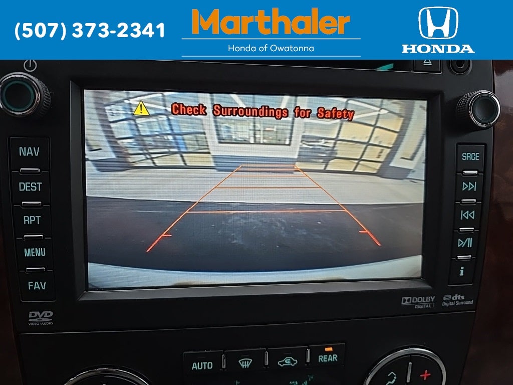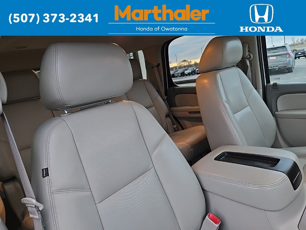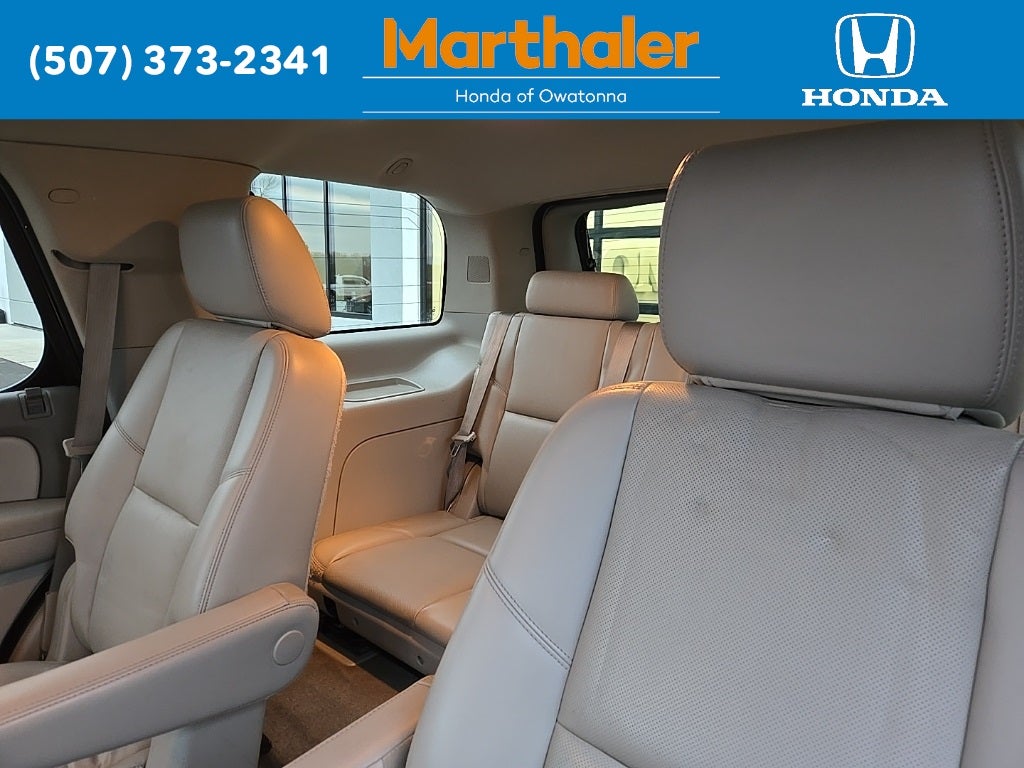 This vehicle Contains the following features and options: Autoride Suspension Package, Heavy-Duty Trailering Package (Heavy-Duty Air-to-Oil Auxiliary Transmission Oil Cooler and Heavy-Duty Air-to-Oil External Engine Oil Cooler), License Plate Front Mounting Package, Preferred Equipment Group 1LZ (2-Speed Active Electronic AutoTrac Transfer Case, 2nd Row Power Seat Release, 2nd Row Reclining Bucket Seats, Auto-Dimming Inside Rear-View Mirror, Automatic Tri-Zone Air Conditioning, Bose Centerpoint 10-Spkr Audio System Feature, Bright Chrome Door Handles, Bright Chrome Grille Insert, Chrome Recovery Hooks, Front Halogen Fog Lamps, Heated & Cooled Driver & Front Passenger Seats, Heated 2nd Row Seats, Heated Leather-Wrapped Steering Wheel, Heavy-Duty Rear Locking Differential, Power Folding & Adjustable Heated Outside Mirrors, Rear Color-Keyed Fascia w/Chrome Strip, Rear Power-Operated Liftgate, Rear Vision Camera, Side Blind Zone Alert, and Universal Home Remote), Sun, Entertainment & Destinations Package (Power Tilt-Sliding Sunroof and Rear Seat Entertainment System), 10 Speakers, 12-Way Power Driver Seat Adjuster, 1st & 2nd Row All-Weather Floor Mats, 20 x 8.5 Polished Aluminum Wheels, 22 12-Spoke Flared Aluminum Alloy (LPO) Wheels, 22 x 9.0 Steel Interim (LPO) Wheels, 3rd Row All-Weather Floor Mats, 3rd row seats: split-bench, 4-Wheel Disc Brakes, 6-Way Power Front Passenger Seat Adjuster, ABS brakes, Adjustable pedals, Air Conditioning, Alloy wheels, AM/FM radio: SiriusXM, Auto-dimming door mirrors, Auto-dimming Rear-View mirror, Auto-leveling suspension, Automatic temperature control, Bodyside moldings, Bumpers: body-color, CD player, Compass, Custom Perforated Leather-Appointed Seat Trim, Delay-off headlights, Driver door bin, Driver vanity mirror, Dual front impact airbags, Dual front side impact airbags, DVD-Audio, Electronic Stability Control, Emergency communication system: OnStar Directions & Connections, Exterior Parking Camera Rear, Floor Console, Front anti-roll bar, Front Bucket Seats, Front Center Armrest, Front dual zone A/C, Front fog lights, Front Power Reclining Bucket Seats, Front reading lights, Front wheel independent suspension, Fully automatic headlights, Garage door transmitter, Heated door mirrors, Heated front seats, Heated rear seats, Heated steering wheel, Illuminated entry, Integrated Trailer Brake Controller, Low tire pressure warning, Memory seat, Navigation System, NavTraffic, Occupant sensing airbag, Outside temperature display, Overhead airbag, Overhead console, Panic alarm, Passenger door bin, Passenger vanity mirror, Pedal memory, Power door mirrors, Power driver seat, Power Liftgate, Power passenger seat, Power steering, Power windows, Radio data system, Radio: AM/FM/SiriusXM Stereo w/CD Player/Navi, Rear air conditioning, Rear anti-roll bar, Rear audio controls, Rear Cargo Mat, Rear reading lights, Rear window defroster, Rear window wiper, Remote keyless entry, Roof rack, Security system, Speed control, Split folding rear seat, Spoiler, Steering wheel mounted audio controls, Tachometer, Tilt steering wheel, Traction control, Trip computer, Turn signal indicator mirrors, USB Port Audio System Feature, Variably intermittent wipers, Ventilated front seats, and Voltmeter.