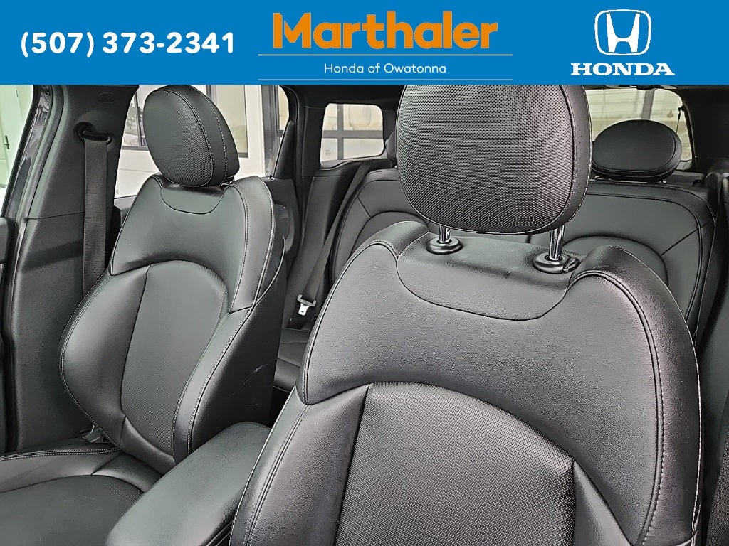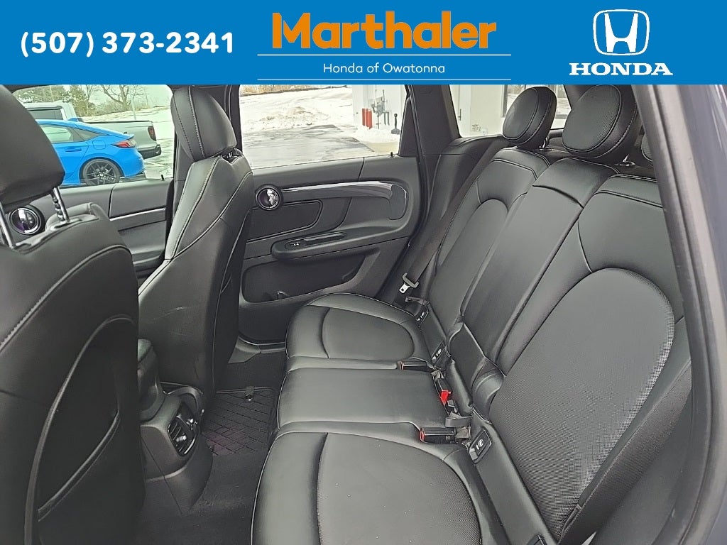 This vehicle Contains the following features and options: 4-Wheel Disc Brakes, 4.059 Axle Ratio, 6 Speakers, 8.8 Touchscreen Navigation System, ABS brakes, Air Conditioning, ALL4-Style Exterior Trim, Alloy wheels, AM/FM radio, Anthracite Headliner, Apple CarPlay Compatibility, Auto-Dimming Interior & Exterior Mirrors, Automatic temperature control, Black Roof & Mirror Caps, Brake assist, Bumpers: body-color, Delay-off headlights, Driver door bin, Driver vanity mirror, Dual front impact airbags, Dual front side impact airbags, Electronic Stability Control, Enhanced USB & Bluetooth®, Exterior Parking Camera Rear, Four wheel independent suspension, Front anti-roll bar, Front Center Armrest w/Storage, Front dual zone A/C, Front fog lights, Front reading lights, Front Sport Seats, Fully automatic headlights, harman/kardon® Logic 7® Digital Surround, Heated door mirrors, Heated Front Seats, Heated front seats, Illuminated entry, JCW Leather Steering Wheel, Knee airbag, Leather steering wheel, Low tire pressure warning, MINI 6.5 Visual Boost Screen, MINI Connected 5, MINI Head-Up Display, Occupant sensing airbag, Outside temperature display, Overhead airbag, Overhead console, Parking Assistant w/Front & Rear PDC, Passenger door bin, Passenger vanity mirror, Power door mirrors, Power Front Seats, Power moonroof, Power steering, Power Tailgate, Power windows, Privacy Glass, Radio data system, Radio: MINI Connected, Rain sensing wipers, Real Time Traffic Information, Rear anti-roll bar, Rear window defroster, Rear window wiper, Remote keyless entry, Roof rack: rails only, SensaTec Leatherette Upholstery, Speed control, Speed-sensing steering, Speed-Sensitive Wipers, Split folding rear seat, Sport steering wheel, Standard Suspension, Steering wheel mounted audio controls, Tachometer, Telescoping steering wheel, Tilt steering wheel, Traction control, Trip computer, Universal Garage-Door Opener, Variably intermittent wipers, Wheels: 18 x 7.5 Pair Spoke Alloy, and Wireless Charging & Enhanced Bluetooth®.