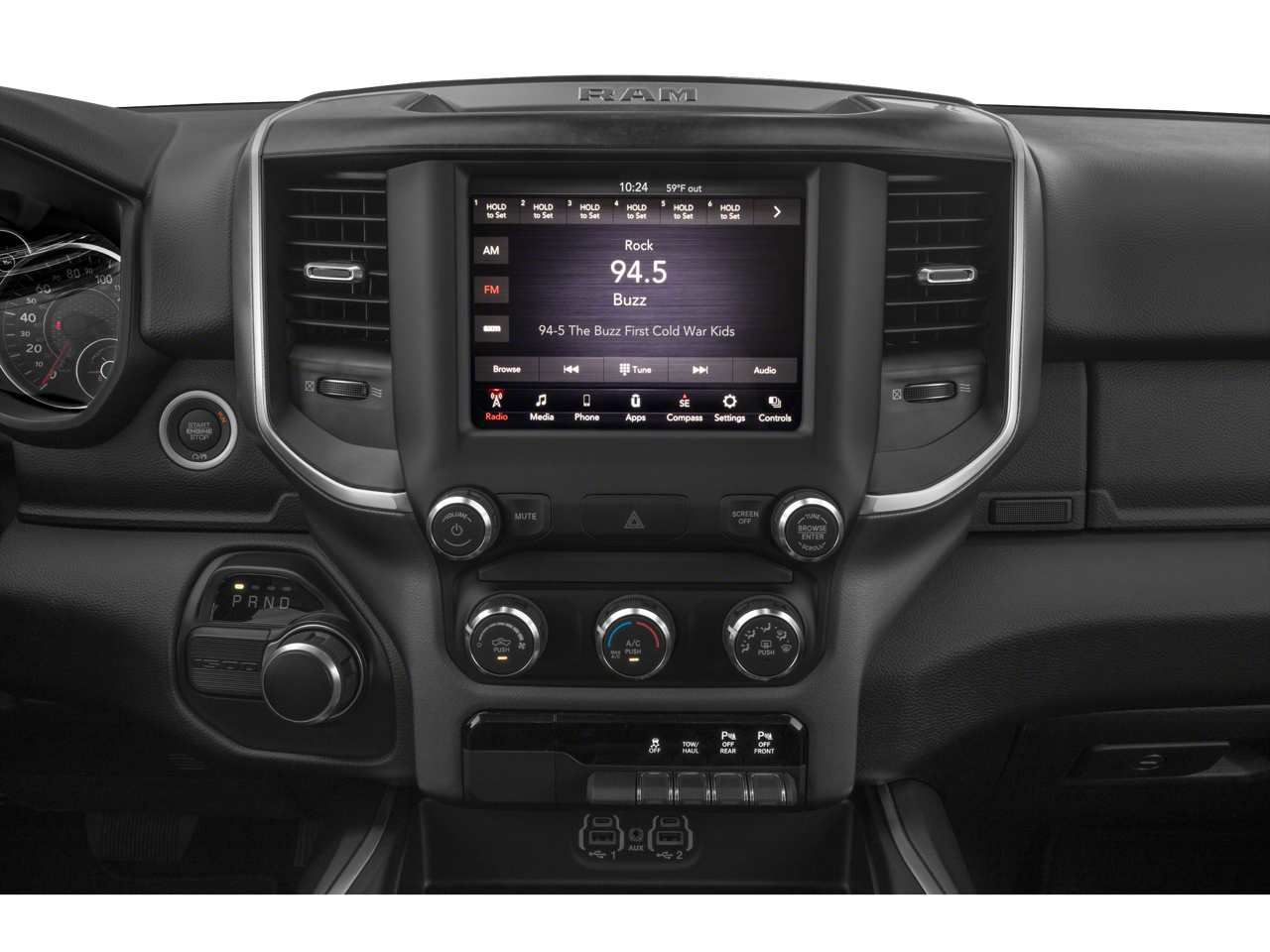 This vehicle Contains the following features and options: Big Horn Level 2 Equipment Group (115V Auxiliary Power Outlet, 115V Auxiliary Rear Power Outlet, 2 USB Full Function/Charge Only Media Hub, 2nd Row In Floor Storage Bins, 400W Inverter, Air Conditioning ATC w/Dual Zone Control, Auto-Dimming Rear-View Mirror, Big Horn IP Badge, Black Premium Power Mirrors, Class IV Receiver Hitch, Dampened Tailgate, Foam Bottle Insert (Door Trim Panel), Glove Box Lamp, Heated Front Seats, Heated Steering Wheel, ParkSense Front/Rear Park Assist w/Stop, Power 4-Way Driver Lumbar Adjust, Power 8-Way Driver Seat, Power Adjustable Pedals, Radio: Uconnect 4 w/8.4 Display, Rear Dome w/On/Off Switch Lamp, Rear Power Sliding Window, Rear Window Defroster, Security Alarm, SiriusXM Satellite Radio, Sun Visors w/Illuminated Vanity Mirrors, and Universal Garage Door Opener), Night Edition (3 Rear Seat Head Restraints, 4 Way Front Headrests, Anti-Spin Differential Rear Axle, Auto-Dimming Exterior Driver Mirror, Black Exterior Truck Badging, Black Headlamp Bezels, Black Interior Accents, Body Color Door Handles, Body Color Exterior Mirrors, Body Color Front Bumper, Body Color Premium Power Mirrors, Body Color Rear Bumper w/Step Pads, Bucket Seats, Deluxe Cloth Bucket Seats, Dual Exhaust w/Black Tips, Exterior Mirrors Courtesy Lamps, Exterior Mirrors w/Memory, Front Seat Back Map Pockets, Full Length Floor Console, Grille Surround 1 Black Texture 2 Black, Manual Adjust 4-Way Front Passenger Seat, Power-Folding Mirrors, Rear 60/40 Folding Seat, and Wheels: 20 x 9.0 Premium Paint/Polished), Quick Order Package 27Z Big Horn (Big Horn Badge), 1-Year SiriusXM Radio Service, 1-Yr SiriusXM Guardian Trial, 12 Touchscreen Display, 33 Gallon Fuel Tank, 4-Wheel Disc Brakes, 48V Belt Starter Generator, 4G LTE Wi-Fi Hot Spot, 5-Year SiriusXM Traffic Service, 5-Year SiriusXM Travel Link Service, 6 Speakers, 9 Amplified Speakers w/Subwoofer, ABS brakes, Air Conditioning, Alloy wheels, AM/FM radio, Apple CarPlay, Blind Spot & Cross Path Detection, Brake assist, Bumpers: chrome, Cloth Bench Seat, Compass, Delay-off headlights, Disassociated Touchscreen Display, Driver door bin, Dual front impact airbags, Dual front side impact airbags, Electronic Stability Control, Engine Calibration Flash (DISC), For Details, Visit DriveUconnect.com, Front & Rear Rubber Floor Mats, Front anti-roll bar, Front Center Armrest w/Storage, Front fog lights, Front reading lights, Front wheel independent suspension, Fully automatic headlights, Google Android Auto, GPS Antenna Input, GPS Navigation, HD Radio, Heated door mirrors, Illuminated entry, Integrated Center Stack Radio, Leather steering wheel, LED Footwell Lighting, LED Taillamps, Low tire pressure warning, Occupant sensing airbag, Outside temperature display, Overhead airbag, Overhead console, Panic alarm, ParkView Rear Back-Up Camera, Passenger door bin, Passenger vanity mirror, Power door mirrors, Power steering, Power windows, Radio data system, Radio: Uconnect 12 w/Navigation, Radio: Uconnect 3 w/5 Display, Rear anti-roll bar, Rear seat center armrest, Rear step bumper, Rear Wheelhouse Liners, Remote keyless entry, Remote Start System, SiriusXM Traffic Plus, SiriusXM Travel Link, SiriusXM w/360L, Speed control, Split folding rear seat, Steering wheel mounted audio controls, Tachometer, Telescoping steering wheel, Tilt steering wheel, Traction control, Trip computer, USB Host Flip, Variably intermittent wipers, Voltmeter, and Wheels: 18 x 8 Cast-Aluminum PainteD.