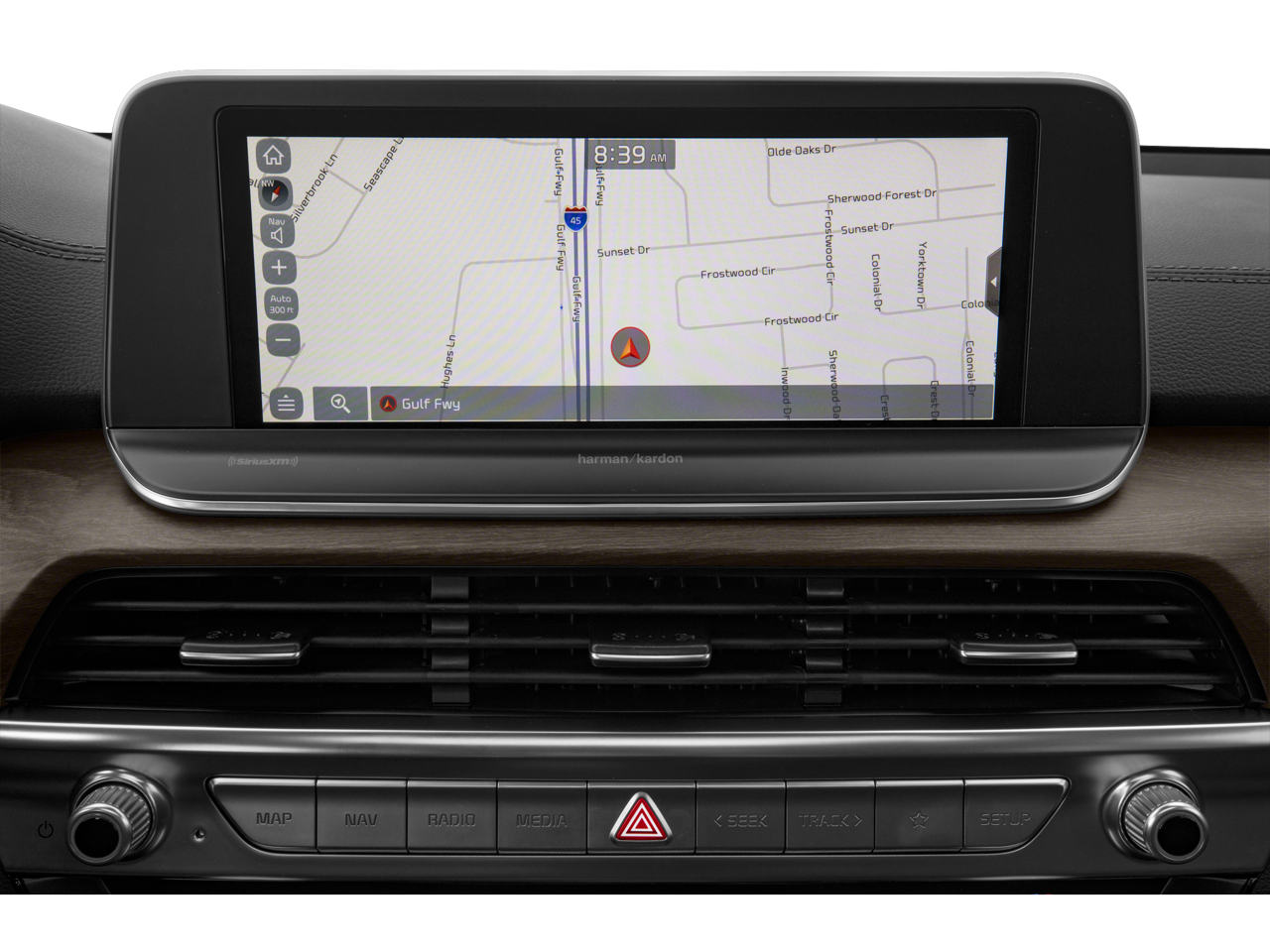 This vehicle Contains the following features and options: Nightfall Edition Package (Black Finish Radiator Grille, Body Color Exterior Door Handles, Exclusive Black Fog Light Bezel, Exclusive Black Headlight Bezels, Front & Rear Gloss Black Finish Bumper Skid Plates, Front & Rear KIA Logo, Gloss Black Finish Exterior Emblems, Gloss Black Finish Front & Rear Door Garnish, Gloss Black Finish Roof Rails, and Wheels: 7.5 x 20 Exclusive Black Finish Alloy), SX Prestige Package (110V Inverter, Heads-Up Display, Heated & Ventilated 2nd Row Seats, Premium Cloth Headliner & Pillar Trim, Premium Nappa Leather Seat Trim, and Rain-Sensing Front Windshield Wipers), Towing Package (Self Leveling Rear Suspension and Tow Hitch w/Harness (TOF)), 10 Speakers, 3.648 Axle Ratio, 3rd row seats: split-bench, 4-Wheel Disc Brakes, ABS brakes, Air Conditioning, Alloy wheels, AM/FM radio: SiriusXM, Apple CarPlay & Android Auto, Auto High-beam Headlights, Auto-dimming Rear-View mirror, Automatic temperature control, Brake assist, Bumpers: body-color, Compass, Delay-off headlights, Driver door bin, Driver vanity mirror, Dual front impact airbags, Dual front side impact airbags, Electronic Stability Control, Emergency communication system: 911 Connect, Four wheel independent suspension, Front anti-roll bar, Front Bucket Seats, Front Center Armrest, Front dual zone A/C, Front fog lights, Front reading lights, Fully automatic headlights, Garage door transmitter: HomeLink, Heated & Ventilated Front Bucket Seats, Heated door mirrors, Heated front seats, Heated steering wheel, Illuminated entry, Illuminated Scuff Plates, Knee airbag, Leather Seat Trim, Leather Shift Knob, Leather steering wheel, Low tire pressure warning, Memory seat, Multicolored Interior Light Kit, Navigation System, Occupant sensing airbag, Outside temperature display, Overhead airbag, Overhead console, Panic alarm, Passenger door bin, Passenger vanity mirror, Power door mirrors, Power driver seat, Power Liftgate, Power moonroof, Power passenger seat, Power steering, Power windows, Radio data system, Radio: AM/FM/SIRIUS Premium Audio, Rear air conditioning, Rear anti-roll bar, Rear audio controls, Rear Bumper Protector, Rear reading lights, Rear window defroster, Rear window wiper, Reclining 3rd row seat, Remote keyless entry, Roof rack: rails only, Security system, Smart Key w/ Push Button and Remote Start, Speed control, Speed-sensing steering, Split folding rear seat, Spoiler, Steering wheel mounted audio controls, SX Dune Brown Nappa Leather Seats, Tachometer, Telescoping steering wheel, Tilt steering wheel, Traction control, Trip computer, Turn signal indicator mirrors, Variably intermittent wipers, Ventilated front seats, and Wheels: 7.5 x 20 Black Finish Alloy.