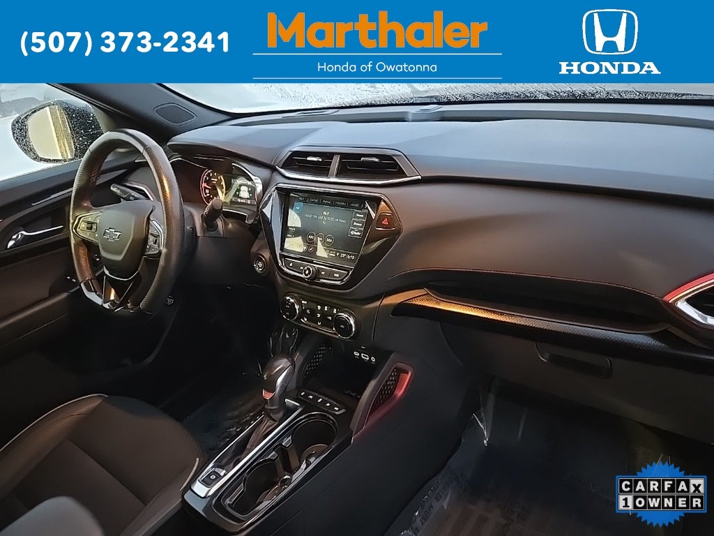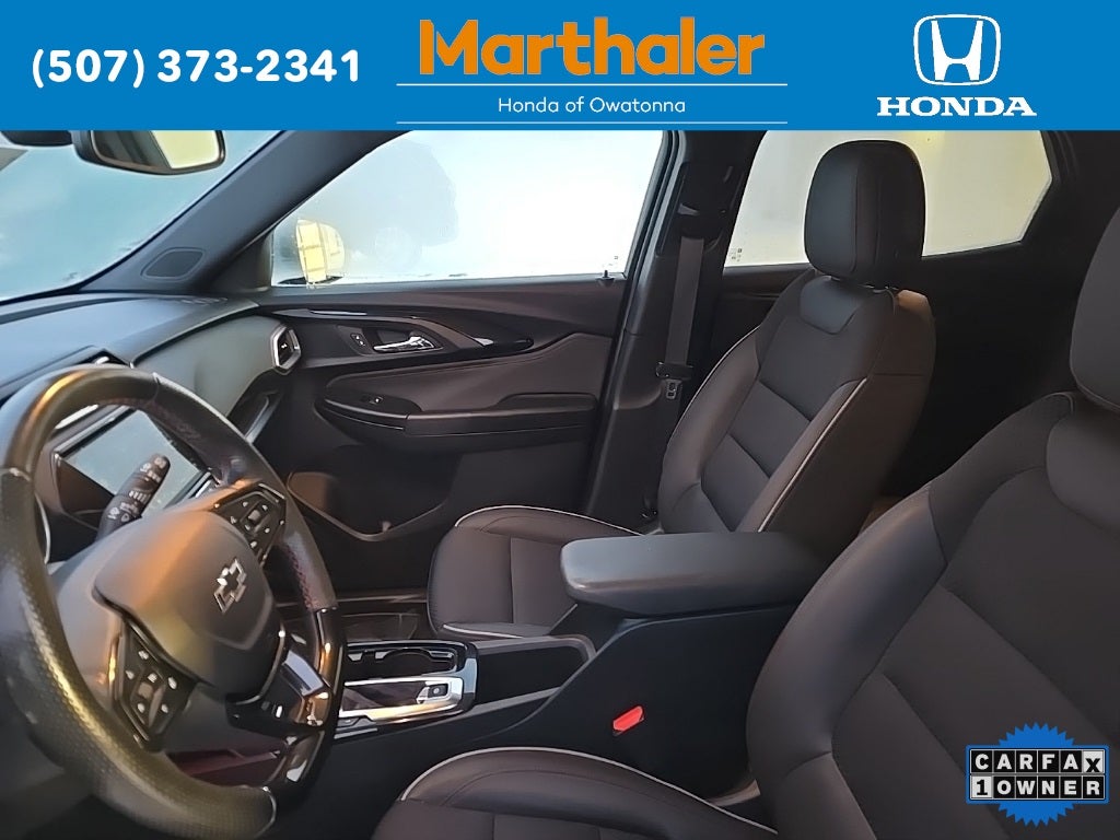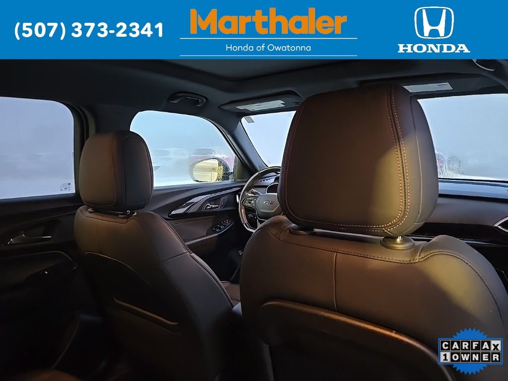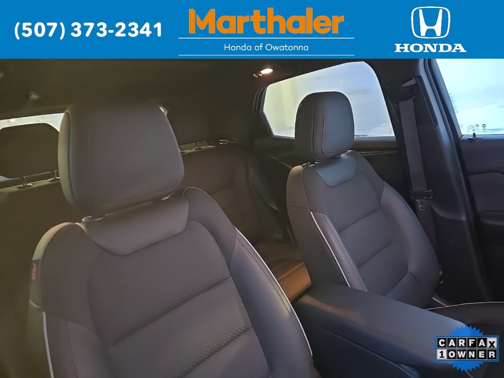 This vehicle Contains the following features and options: Confidence II Package (Rear Park Assist), Convenience Package (1 Type-A & 1 Type-C USB Charging-Only Ports, 120-Volt Power Outlet, 8 Diagonal Color Touchscreen Display, Cabin Humidity Sensor, Driver & Front Passenger Illuminated Vanity Mirrors, Inside Rear-View Auto-Dimming Mirror, and Single-Zone Auto Climate Control Air Conditioning), Preferred Equipment Group 1RS (Heated Steering Wheel), Sun & Liftgate Package (Dual-Pane Panoramic Power Sunroof and Hands-Free Power Programmable Liftgate), Technology Package (4.2 Diagonal Multi-Color Driver Info Center, Adaptive Cruise Control, Bose Premium 7-Speaker Audio System Feature, HD Radio, HD Rear Vision Camera, LED Headlamps, Memory Card Receptacle, Radio: Chevrolet Infotainment 3 Plus System, SiriusXM w/360L, and Wireless Charging), 2-Way Adjustable Front Head Restraints, 2-Way Power Driver Lumbar Seat Adjuster, 3.17 Axle Ratio, 4-Way Manual Front Passenger Seat Adjuster, 4-Wheel Disc Brakes, 6 Speakers, 6-Speaker Audio System Feature w/Amplifier, 7 Diagonal Color Touchscreen, 8-Way Power Driver Seat Adjuster, ABS brakes, Air Conditioning, Alloy wheels, AM/FM radio: SiriusXM, Auto High-beam Headlights, Brake assist, Bumpers: body-color, Cloth w/Leatherette Seat Trim, Compass, Delay-off headlights, Driver door bin, Driver vanity mirror, Dual front impact airbags, Dual front side impact airbags, Electronic Stability Control, Emergency communication system: OnStar and Chevrolet connected services capable, Exterior Parking Camera Rear, Flat-Folding Front Passenger Seatback, Front anti-roll bar, Front Bucket Seats, Front Center Armrest, Front fog lights, Front License Plate Bracket, Front reading lights, Front wheel independent suspension, Fully automatic headlights, Heated door mirrors, Heated Driver & Front Passenger Seats, Heated front seats, Heated steering wheel, Illuminated entry, Knee airbag, Leather Shift Knob, Leather steering wheel, Low tire pressure warning, Mosaic Black Metallic Two-Tone Roof, Not Equipped w/Rear Park Assist (060), Occupant sensing airbag, Overhead airbag, Overhead console, Panic alarm, Passenger door bin, Passenger vanity mirror, Power door mirrors, Power driver seat, Power steering, Power windows, Radio data system, Radio: Chevrolet Infotainment 3 System, Rear seat center armrest, Rear side impact airbag, Rear window defroster, Rear window wiper, Remote keyless entry, Ride & Handling Suspension, Security system, SiriusXM Radio, Speed control, Split folding rear seat, Spoiler, Steering wheel mounted audio controls, Tachometer, Telescoping steering wheel, Tilt steering wheel, Traction control, Trip computer, Variably intermittent wipers, Wheels: 18 High Gloss Black Machined Aluminum, and Wireless Apple CarPlay/Android Auto.