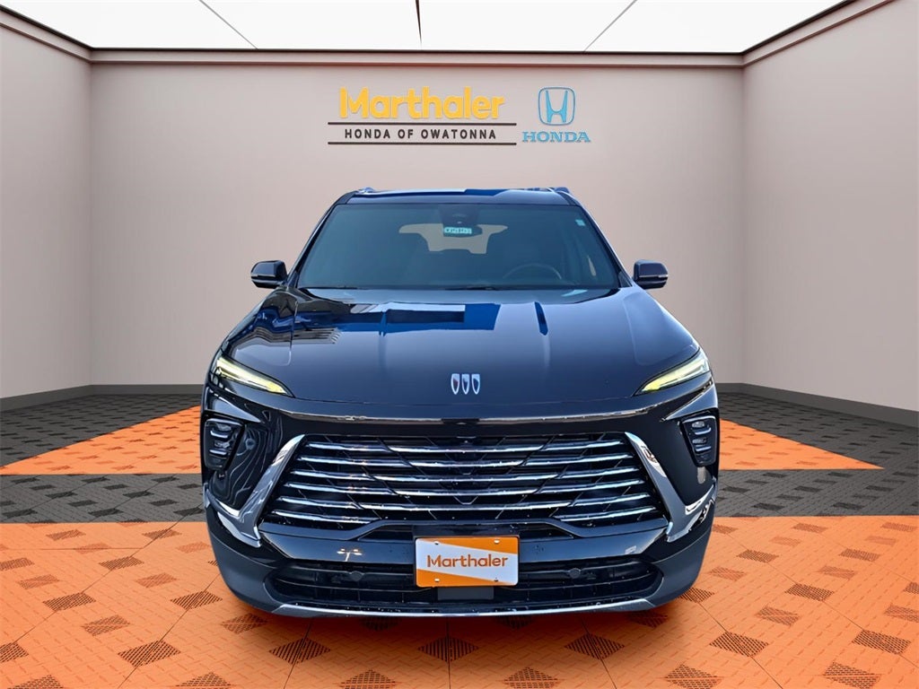 This vehicle Contains the following features and options: Front Mounting License Plate Bracket Package, Preferred Equipment Group 1SD, 12 Speakers, 3rd row seats: split-bench, 4-Wheel Disc Brakes, ABS brakes, Air Conditioning, Alloy wheels, AM/FM radio: SiriusXM with 360L, Auto High-beam Headlights, Auto-dimming door mirrors, Auto-dimming Rear-View mirror, Automatic temperature control, Bose Premium 12-Speaker Audio System, Brake assist, Bumpers: body-color, Compass, Delay-off headlights, Deleted OnStar Basics, Driver 4-Way Power Lumbar Seat Adjuster, Driver 8-Way Power Seat Adjuster, Driver door bin, Driver vanity mirror, Dual front impact airbags, Dual front side impact airbags, Electronic Stability Control, Emergency communication system: OnStar and Buick connected services capable, Four wheel independent suspension, Front anti-roll bar, Front Bucket Seats, Front Center Armrest, Front dual zone A/C, Front Passenger 4-Way Power Lumbar Seat Adjuster, Front Passenger 6-Way Power Seat Adjuster, Front reading lights, Fully automatic headlights, Heated door mirrors, Heated Driver and Front Passenger Seats, Heated front seats, Heated steering wheel, Illuminated entry, Leather steering wheel, Leatherette Seat Trim, Low tire pressure warning, Navigation System, Occupant sensing airbag, Outside temperature display, Overhead airbag, Overhead console, Panic alarm, Passenger door bin, Passenger vanity mirror, Power door mirrors, Power driver seat, Power Liftgate, Power passenger seat, Power steering, Power windows, Premium audio system: Buick Infotainment System, Radio data system, Radio: Infotainment Center, Rear air conditioning, Rear anti-roll bar, Rear reading lights, Rear side impact airbag, Rear window defroster, Rear window wiper, Remote keyless entry, Security system, SiriusXM with 360L Trial Subscription, Speed control, Speed-sensing steering, Spoiler, Steering wheel mounted audio controls, Tachometer, Telescoping steering wheel, Tilt steering wheel, Traction control, Trip computer, Turn signal indicator mirrors, Variably intermittent wipers, Voltmeter, Wheels: 20 Alloy with Medium Android Finish, Wireless Apple CarPlay, and Wireless Google Android Auto.