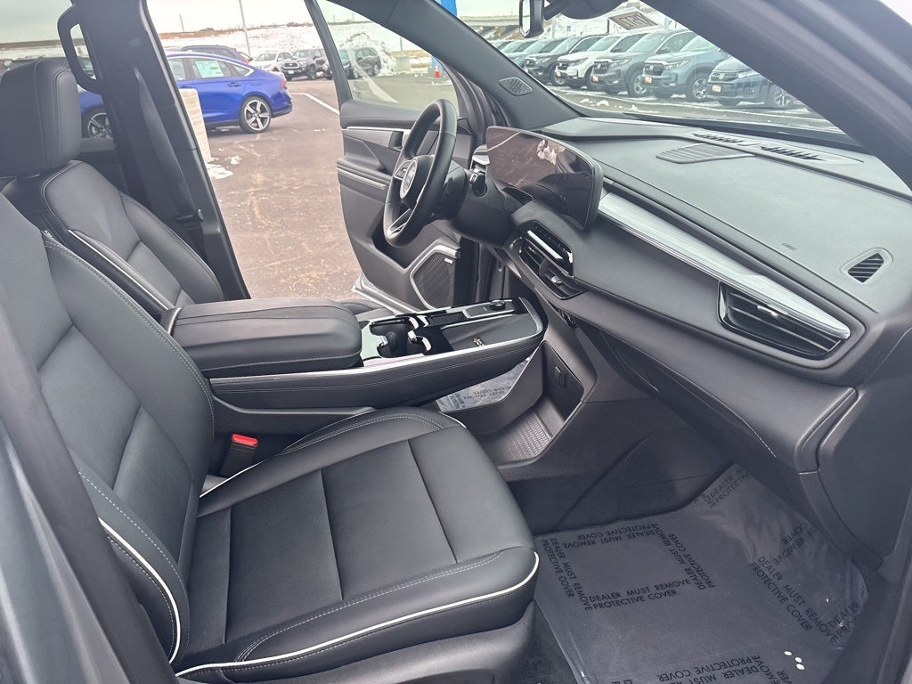 This vehicle Contains the following features and options: Front Mounting License Plate Bracket Package, Preferred Equipment Group 1SD, 12 Speakers, 3rd row seats: split-bench, 4-Wheel Disc Brakes, ABS brakes, Air Conditioning, Alloy wheels, AM/FM radio: SiriusXM with 360L, Auto High-beam Headlights, Auto-dimming door mirrors, Auto-dimming Rear-View mirror, Automatic temperature control, Bose Premium 12-Speaker Audio System, Brake assist, Bumpers: body-color, Compass, Delay-off headlights, Deleted OnStar Basics, Driver 4-Way Power Lumbar Seat Adjuster, Driver 8-Way Power Seat Adjuster, Driver door bin, Driver vanity mirror, Dual front impact airbags, Dual front side impact airbags, Electronic Stability Control, Emergency communication system: OnStar and Buick connected services capable, Four wheel independent suspension, Front anti-roll bar, Front Bucket Seats, Front Center Armrest, Front dual zone A/C, Front Passenger 4-Way Power Lumbar Seat Adjuster, Front Passenger 6-Way Power Seat Adjuster, Front reading lights, Fully automatic headlights, Heated door mirrors, Heated Driver and Front Passenger Seats, Heated front seats, Heated steering wheel, Illuminated entry, Leather steering wheel, Leatherette Seat Trim, Low tire pressure warning, Navigation System, Occupant sensing airbag, Outside temperature display, Overhead airbag, Overhead console, Panic alarm, Passenger door bin, Passenger vanity mirror, Power door mirrors, Power driver seat, Power Liftgate, Power passenger seat, Power steering, Power windows, Premium audio system: Buick Infotainment System, Radio data system, Radio: Infotainment Center, Rear air conditioning, Rear anti-roll bar, Rear reading lights, Rear side impact airbag, Rear window defroster, Rear window wiper, Remote keyless entry, Security system, SiriusXM with 360L Trial Subscription, Speed control, Speed-sensing steering, Spoiler, Steering wheel mounted audio controls, Tachometer, Telescoping steering wheel, Tilt steering wheel, Traction control, Trip computer, Turn signal indicator mirrors, Variably intermittent wipers, Voltmeter, Wheels: 20 Alloy with Medium Android Finish, Wireless Apple CarPlay, and Wireless Google Android Auto.