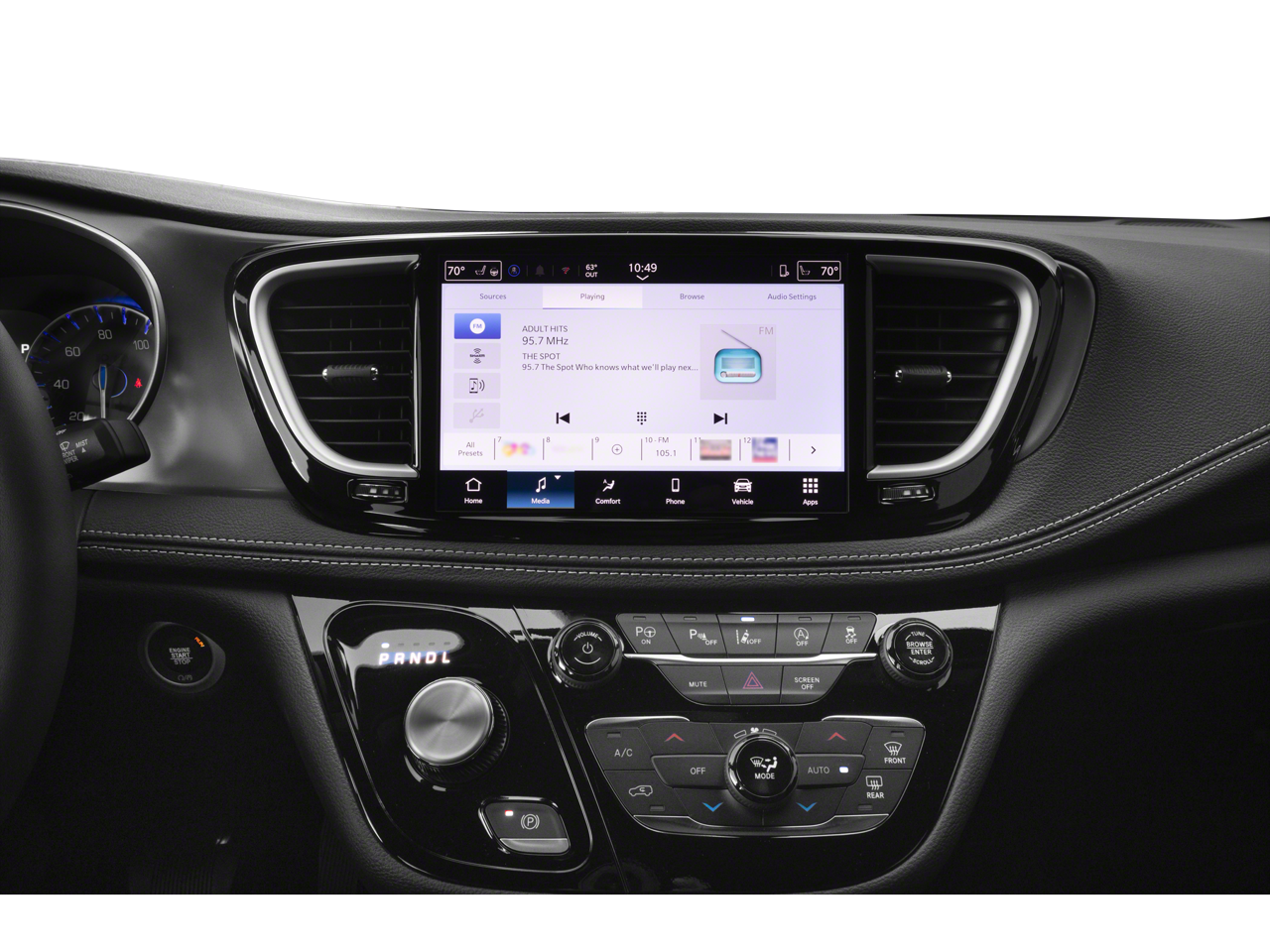This vehicle Contains the following features and options: Quick Order Package 27P, 13 Speakers, 3.25 Axle Ratio, 3rd row seats: split-bench, 4-Wheel Disc Brakes, ABS brakes, Air Conditioning, Alloy wheels, AM/FM radio: SiriusXM 360L, Apple CarPlay/Android Auto, Audio memory, Auto-dimming Rear-View mirror, Automatic temperature control, Black Seats, Brake assist, Bumpers: body-color, Compass, Delay-off headlights, Driver door bin, Driver vanity mirror, Driver's Seat Mounted Armrest, Dual front impact airbags, Dual front side impact airbags, Electronic Stability Control, Emergency communication system: Chrysler Connect, Four wheel independent suspension, Front anti-roll bar, Front Bucket Seats, Front dual zone A/C, Front fog lights, Front reading lights, Fully automatic headlights, Garage door transmitter, Heated door mirrors, Heated front seats, Heated rear seats, Heated steering wheel, Illuminated entry, Integrated Active Noise Cancellation, Knee airbag, Low tire pressure warning, Manufacturer's Statement of Origin, Memory seat, Nappa Leather Bucket Seats with S Logo, Navigation System, Occupant sensing airbag, Outside temperature display, Overhead airbag, Overhead console, Panic alarm, ParkView Rear Back-Up Camera, Passenger door bin, Passenger seat mounted armrest, Passenger vanity mirror, Power door mirrors, Power driver seat, Power Liftgate, Power moonroof, Power passenger seat, Power steering, Power windows, Radio data system, Radio: Uconnect 5 Nav with 10.1 Display, Rain sensing wipers, Rear air conditioning, Rear reading lights, Rear window defroster, Rear window wiper, Reclining 3rd row seat, Remote keyless entry, Roof rack, Security system, Speed control, Split folding rear seat, Spoiler, Steering wheel mounted audio controls, Tachometer, Telescoping steering wheel, Tilt steering wheel, Touring Suspension, Traction control, Trip computer, Turn signal indicator mirrors, Variably intermittent wipers, Ventilated front seats, Voltmeter, and Wheels: 20 x 7.5 S-Model Aluminum Design 1.