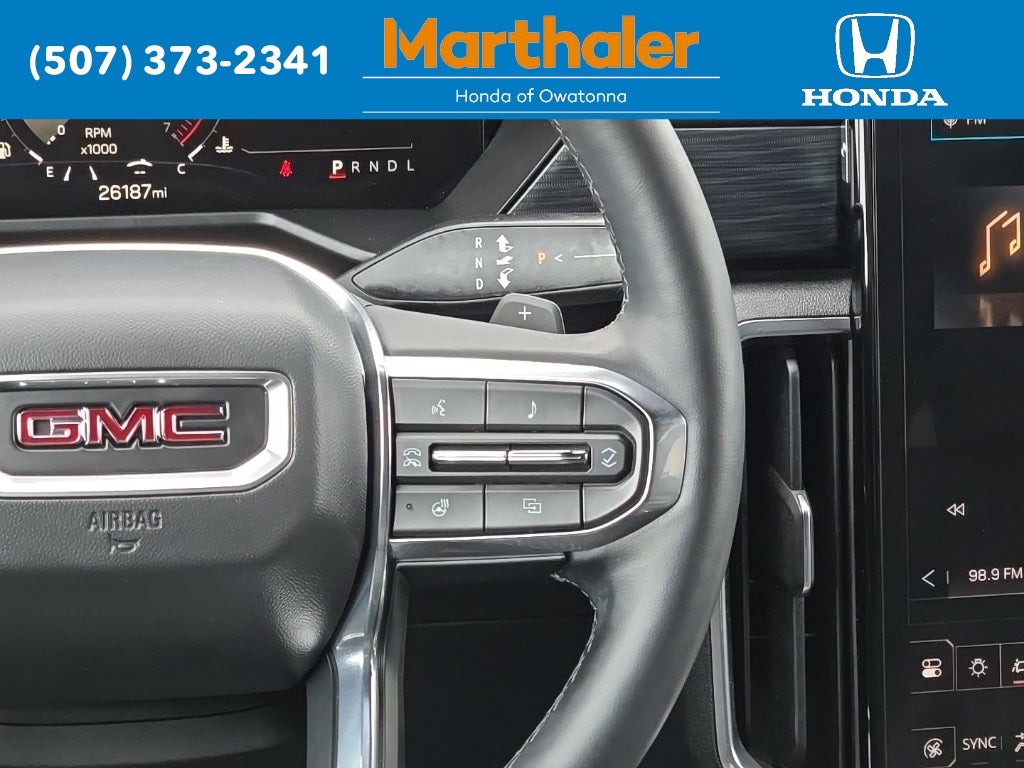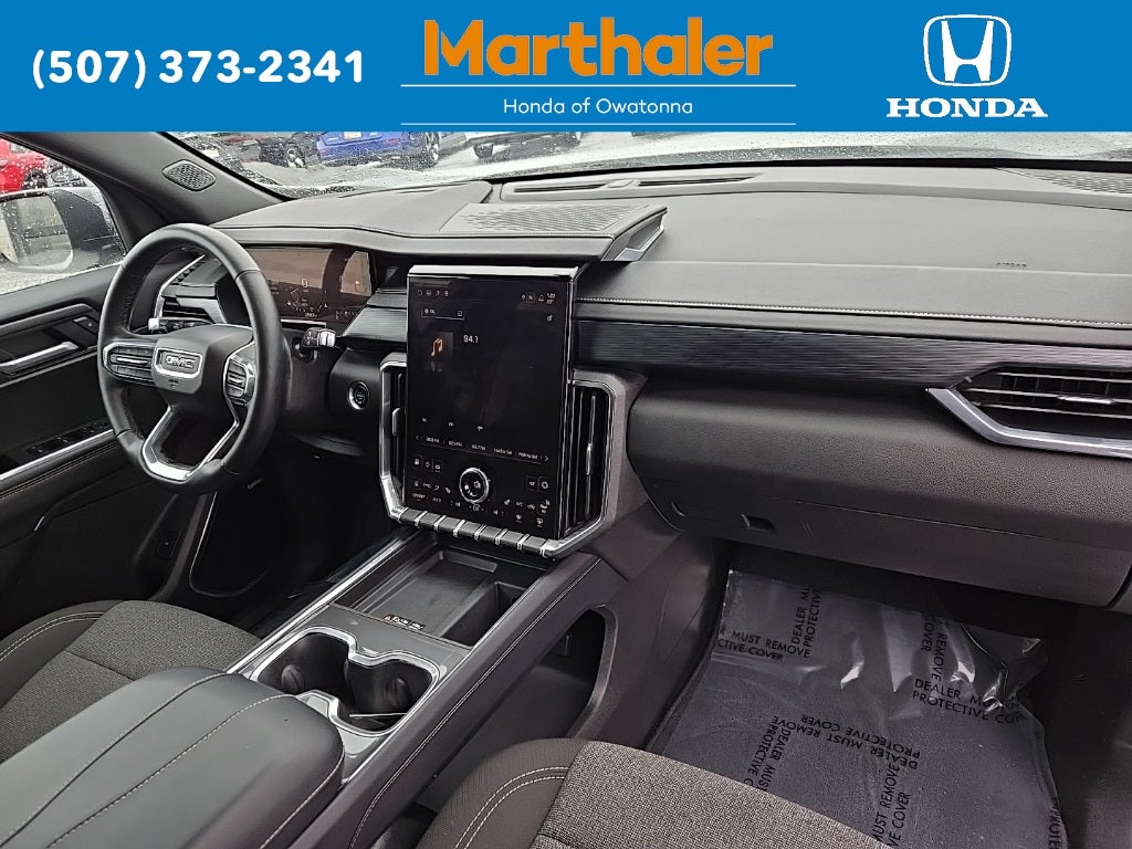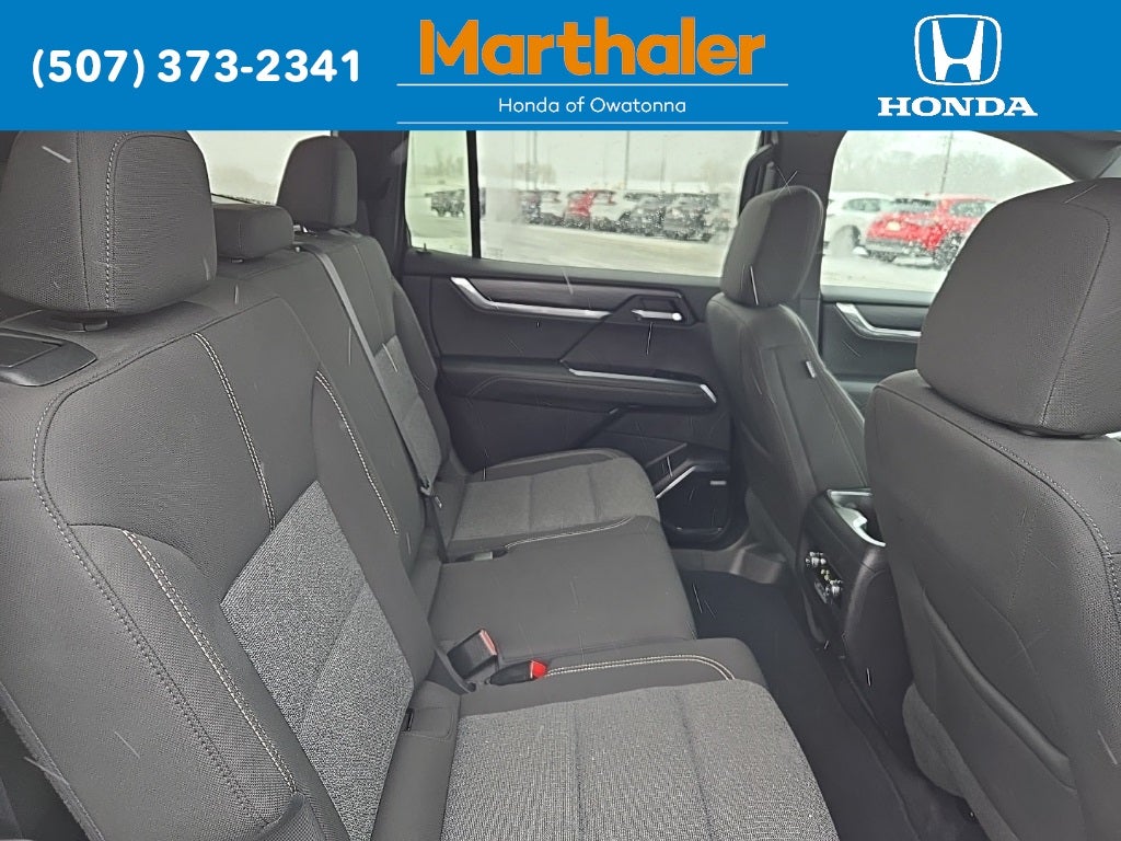 This vehicle Contains the following features and options: Preferred Equipment Group 4SC, 12 Speakers, 18 x 7.5 Aluminum Wheels, 2-Way Driver Power Lumbar Seat Adjuster, 3.49 Final Drive Axle Ratio, 3rd row seats: split-bench, 4-Way Manual Front Passenger Seat Adjuster, 4-Wheel Disc Brakes, 8-Passenger Seating (2-3-3 Seating Configuration), 8-Way Power Driver Seat Adjuster, ABS brakes, Air Conditioning, Alloy wheels, AM/FM radio: SiriusXM with 360L, Apple CarPlay/Android Auto, Auto High-beam Headlights, Auto-dimming Rear-View mirror, Automatic temperature control, Black Wheel Lug Nuts, Bodyside moldings, Bose Premium 12-Speaker System with Sub-Woofer, Brake assist, Bumpers: body-color, Cloth Seat Trim, Compass, Delay-off headlights, Driver door bin, Driver vanity mirror, Dual front impact airbags, Dual front side impact airbags, Electronic Stability Control, Emergency communication system: OnStar Services capable, Exterior Parking Camera Rear, Four wheel independent suspension, Front anti-roll bar, Front Bucket Seats, Front Center Armrest, Front dual zone A/C, Front fog lights, Front reading lights, Fully automatic headlights, Heated door mirrors, Heated Driver and Front Passenger Seats, Heated front seats, Heated steering wheel, Illuminated entry, Leather steering wheel, Low tire pressure warning, Navigation System, Occupant sensing airbag, Outside temperature display, Overhead airbag, Overhead console, Panic alarm, Passenger door bin, Passenger vanity mirror, Power door mirrors, Power driver seat, Power Liftgate, Power steering, Power windows, Radio data system, Radio: 15 Diagonal Premium GMC Infotainment System, Rear air conditioning, Rear anti-roll bar, Rear reading lights, Rear seat center armrest, Rear side impact airbag, Rear window defroster, Rear window wiper, Remote keyless entry, Security system, SiriusXM with 360L, Speed control, Speed-sensing steering, Split folding rear seat, Spoiler, Sport steering wheel, Steering wheel mounted audio controls, Tachometer, Telescoping steering wheel, Tilt steering wheel, Traction control, Trip computer, Turn signal indicator mirrors, Variably intermittent wipers, and Voltmeter.