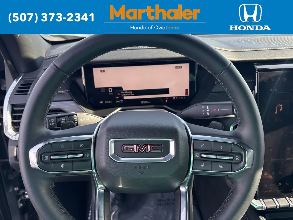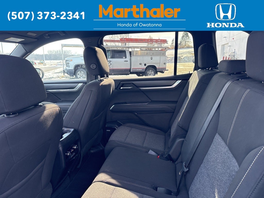 This vehicle Contains the following features and options: Preferred Equipment Group 4SD, Navigation System, 12 Speakers, 18 x 7.5 Aluminum Wheels, 2-Way Driver Power Lumbar Seat Adjuster, 3.49 Final Drive Axle Ratio, 3rd row seats: split-bench, 4-Way Manual Front Passenger Seat Adjuster, 4-Wheel Disc Brakes, 8-Passenger Seating (2-3-3 Seating Configuration), 8-Way Power Driver Seat Adjuster, ABS brakes, Air Conditioning, Alloy wheels, AM/FM radio: SiriusXM with 360L, Apple CarPlay/Android Auto, Auto High-beam Headlights, Auto-dimming Rear-View mirror, Automatic temperature control, Bodyside moldings, Bose Premium 12-Speaker System with Sub-Woofer, Brake assist, Bumpers: body-color, Cloth Seat Trim, Compass, Delay-off headlights, Driver door bin, Driver vanity mirror, Dual front impact airbags, Dual front side impact airbags, Electronic Stability Control, Emergency communication system: OnStar Services capable, Exterior Parking Camera Rear, Four wheel independent suspension, Front anti-roll bar, Front Bucket Seats, Front Center Armrest, Front dual zone A/C, Front fog lights, Front License Plate Bracket, Front reading lights, Fully automatic headlights, Heated door mirrors, Heated Driver and Front Passenger Seats, Heated front seats, Heated steering wheel, Illuminated entry, Leather steering wheel, Low tire pressure warning, Occupant sensing airbag, Outside temperature display, Overhead airbag, Overhead console, Panic alarm, Passenger door bin, Passenger vanity mirror, Power door mirrors, Power driver seat, Power Liftgate, Power steering, Power windows, Radio data system, Radio: 15 Diagonal Premium GMC Infotainment System, Rear air conditioning, Rear anti-roll bar, Rear reading lights, Rear seat center armrest, Rear side impact airbag, Rear window defroster, Rear window wiper, Remote keyless entry, Security system, SiriusXM with 360L, Speed control, Speed-sensing steering, Split folding rear seat, Spoiler, Sport steering wheel, Steering wheel mounted audio controls, Tachometer, Telescoping steering wheel, Tilt steering wheel, Traction control, Trip computer, Turn signal indicator mirrors, Variably intermittent wipers, and Voltmeter.