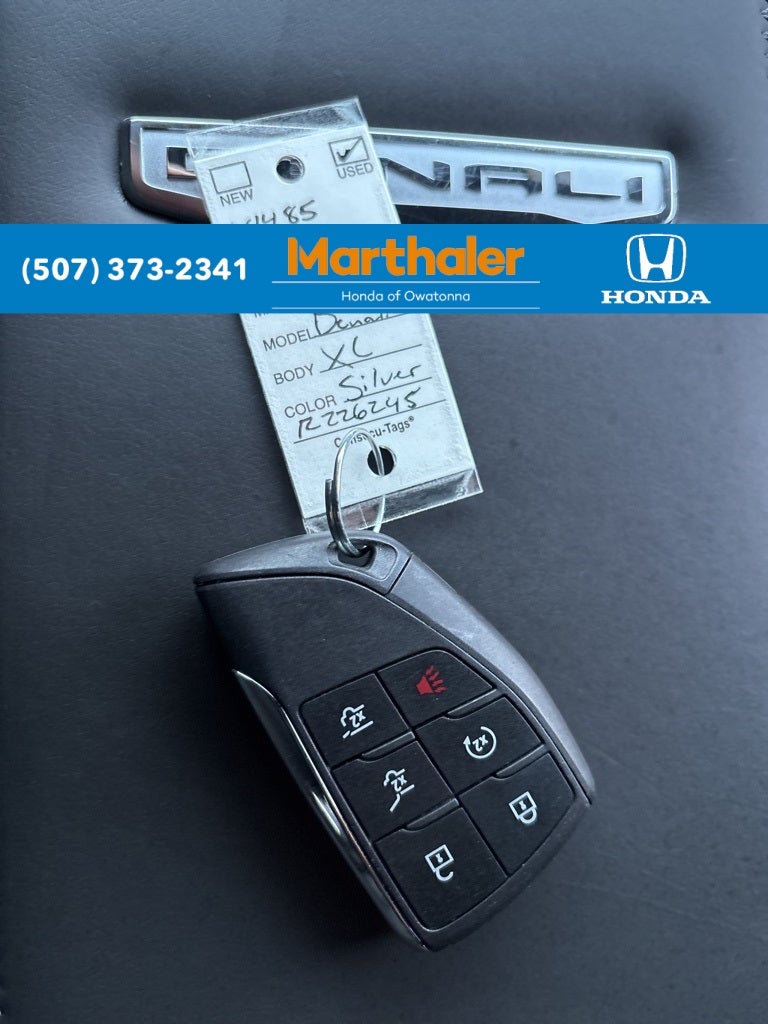 This vehicle Contains the following features and options: License Plate Front Mounting Package, Preferred Equipment Group 5SA (15 Diagonal Multi-Color Head-Up Display, 4-Way Power Driver Lumbar Seat Adjuster, 4-Way Power Front Passenger Lumbar Seat Adjuster, AutoSense Hands-Free Power Liftgate, Bright Front and Rear Door Sill Plates, Dual Exhaust System, Galvano Bodyside Moldings, Magnetic Ride Control Suspension, Perforated Heather and Ventilated Driver and Front Passenger Seats, Power Release 2nd Row Bucket Seats, Power Tilt and Telescopic Steering Column, and Wheels: 20 x 9 6-Spoke Polished Aluminum), 10 Speakers, 3 Years of OnStar Services/Safety Services, 3.23 Rear Axle Ratio, 3rd row seats: split-bench, 4-Wheel Disc Brakes, ABS brakes, Adaptive suspension, Air Conditioning, Alloy wheels, AM/FM radio: SiriusXM with 360L, Apple CarPlay/Android Auto, Audio memory, Auto High-beam Headlights, Auto-dimming door mirrors, Auto-dimming Rear-View mirror, Auto-leveling suspension, Automatic temperature control, Bodyside moldings, Bose 10-Speaker Surround with CenterPoint, Brake assist, Bumpers: body-color, Compass, Delay-off headlights, Deleted OnStar Basics, Driver door bin, Driver vanity mirror, Dual front impact airbags, Dual front side impact airbags, Electronic Stability Control, Emergency communication system: OnStar and GMC connected services capable, Exterior Parking Camera Rear, Four wheel independent suspension, Front anti-roll bar, Front Bucket Seats, Front Center Armrest, Front dual zone A/C, Front fog lights, Front reading lights, Fully automatic headlights, Garage door transmitter, Heads-Up Display, Heated door mirrors, Heated Driver and Front Passenger Seats, Heated front seats, Heated rear seats, Heated steering wheel, Illuminated entry, Low tire pressure warning, Memory seat, Navigation system: GMC Connected Navigation, Occupant sensing airbag, Outside temperature display, Overhead airbag, Overhead console, Panic alarm, Passenger door bin, Passenger vanity mirror, Perforated Leather Seating Surfaces, Power door mirrors, Power driver seat, Power Liftgate, Power passenger seat, Power steering, Power windows, Radio: 16.8 Diagonal Premium GMC Infotainment System, Rain sensing wipers, Rear air conditioning, Rear anti-roll bar, Rear reading lights, Rear window defroster, Rear window wiper, Remote keyless entry, Security system, SiriusXM with 360L, Speed control, Speed-sensing steering, Split folding rear seat, Spoiler, Steering wheel memory, Steering wheel mounted audio controls, Tachometer, Telescoping steering wheel, Tilt steering wheel, Traction control, Trip computer, Turn signal indicator mirrors, Variably intermittent wipers, Ventilated front seats, Voltmeter, Wheel Locks (set of 4), and Wheels: 22 x 9 Ultra-Bright Machined.
